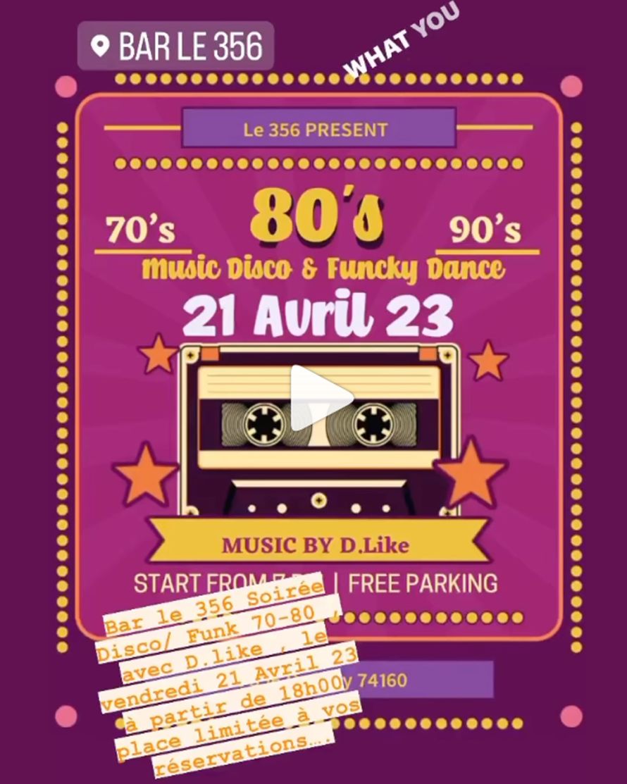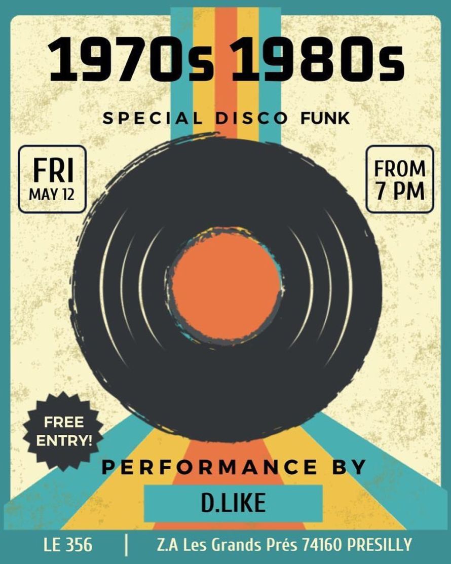 - Event description: Soirée Disco/ Funk 70-80-90 , avec D.like , place limitée à vos réservations….