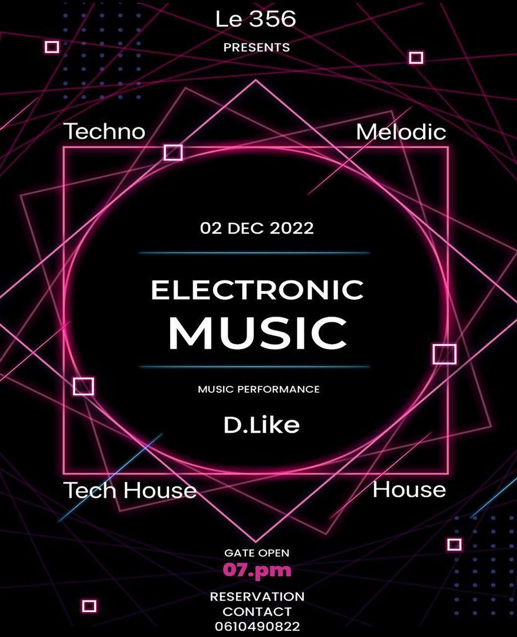 Bar le 356 Soirée TechHouse , Electromusic , House Frenchtouch avec D.like place limitée à vos réservations….